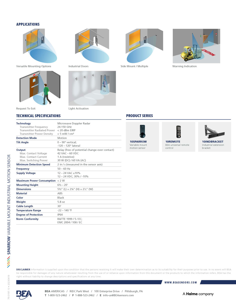 BEA 10SPARROW VARIABLE MOUNT INDUSTRIAL MOTION SENSOR